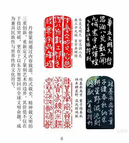 通过“内容载道、形式载史、精神载文明”的三重创新,丹册篆刻重新定义了篆刻艺术的边界。